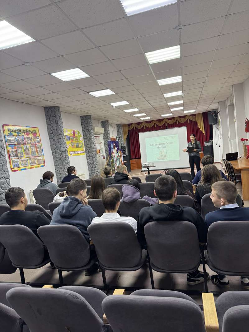 Исторический час «Сталинградская битва» прошел в сельском клубе х.Долгогусевского, ребятам рассказывали о самом крупном сражении Великой Отечественной войны, которое длилось 200 дней и ночей: с 17 июля 1942 года по 2 февраля 1943 года. Участникам мероприятия так же, показали отрывок из художественного фильма, а в конце мероприятия провели викторину, где ребята отвечали на вопросы про Сталинградскую битву, одну из героических страниц в истории народа.